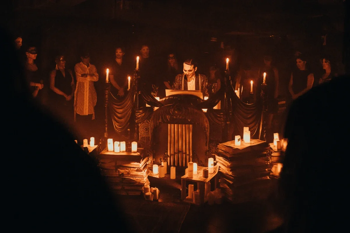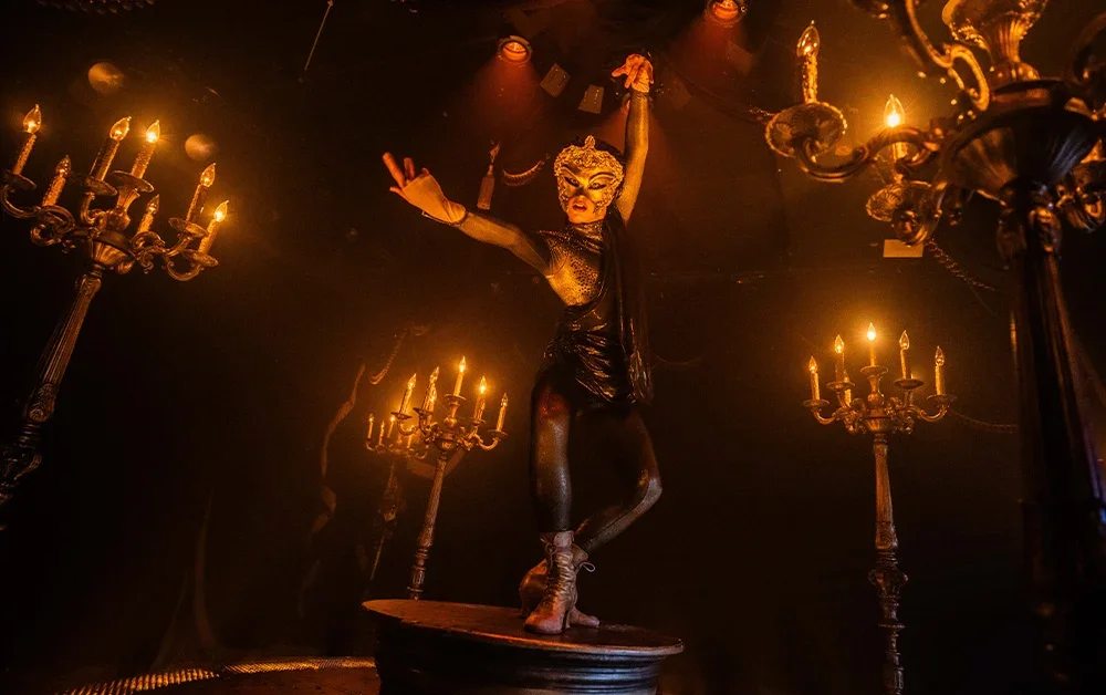 As opposed to viewers sitting in seats and watching the action unfold on stage, Masquerade physically places the audience members in the middle of the story unfolding around them, even directly interacting with the show’s actors. Audiences are divided into groups of 60 people, and each group – called a pulse – moves independently through the show experience, which takes place in a renovated art supply shop on 57th Street in New York City.
